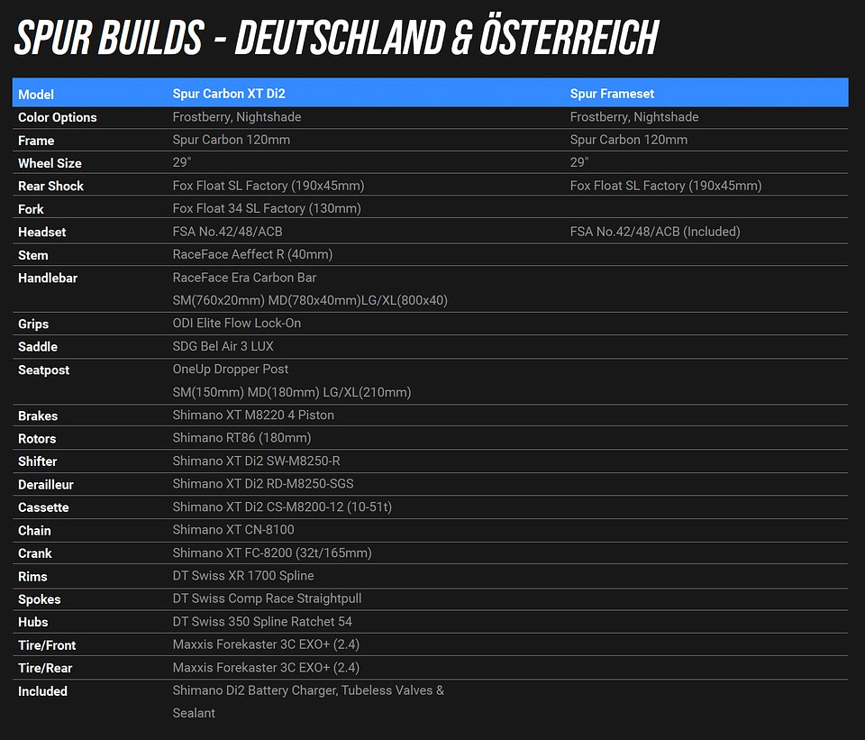 Das Transition Spur ist in Deutschland und Österreich ab Mitte März 2026 wie folgt erhältlich: